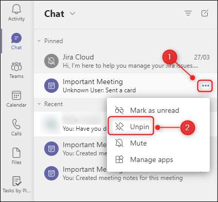 Untuk melepaskan obrolan setelah tidak lagi menjadi prioritas, klik ikon menu tiga-dot yang sesuai dan pilih "Unpin" dari menu konteks.