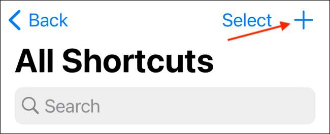 Kemudian, dari tab "My Portcuts", ketuk tombol "+" dari sudut kanan atas untuk membuat pintasan baru.