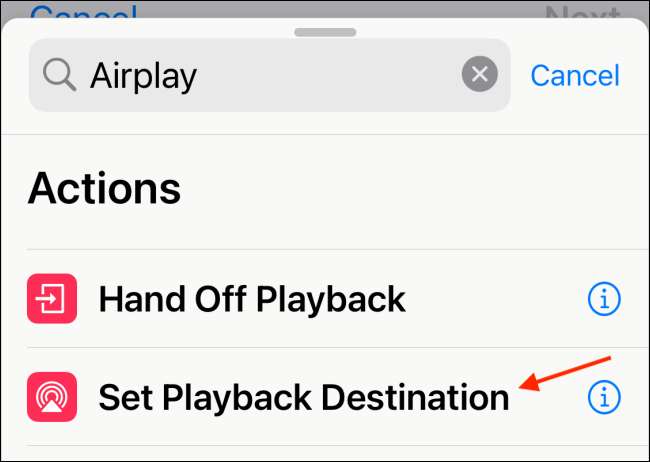 Cari dan tambahkan tindakan "Set Playback Destination".