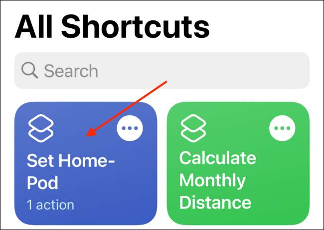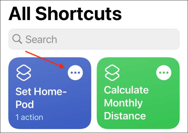 Untuk memulai, buka aplikasi "Pintasan". Kemudian, dari pintasan "Set HomePod", ketuk tombol Menu Tiga-Dot.