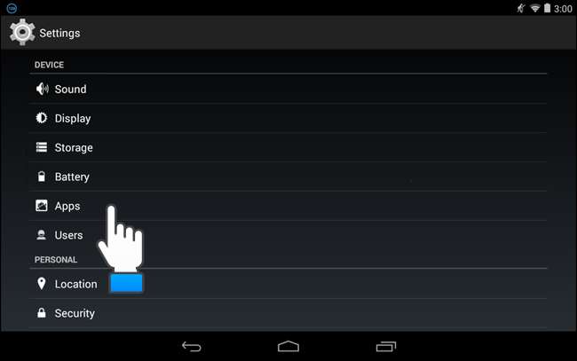 Di bagian "Perangkat" di layar "Setelan", sentuh "Aplikasi".