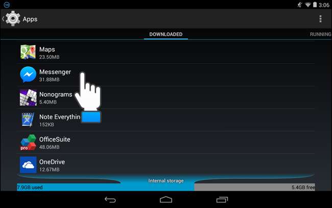 Gulir ke bawah dalam daftar "Diunduh" di layar "Aplikasi" sampai Anda melihat "Messenger" dan sentuh.