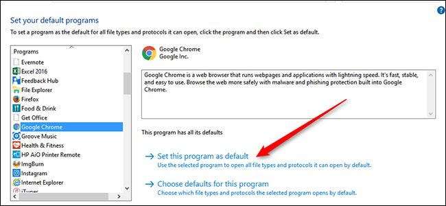 Di jendela baru yang muncul, gulir untuk menemukan browser pilihan Anda dalam daftar dan klik. Kemudian pilih "Set this program as default" di sisi kanan jendela.