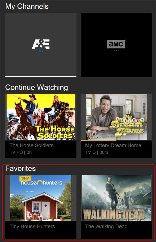 Tampaknya Anda tidak bisa benar-benar memfavoritkan — atau "hati" —tayangan live, yang agak aneh. Sebaliknya, ini hanya berfungsi dengan acara yang tersedia untuk streaming, yang dapat Anda akses dengan beberapa cara berbeda: dengan memeriksa bagian "Sekarang Tersedia" untuk saluran tertentu di Panduan, atau dengan mencari acara tertentu.