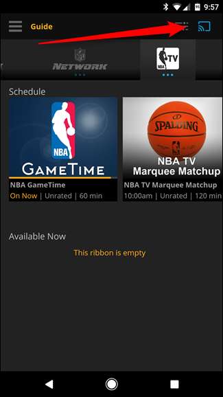 Untuk memulai, cukup ketuk ikon Cast di pojok kanan atas antarmuka Sling di ponsel Anda, lalu pilih perangkat transmisi Anda. Sejak saat itu, semua yang Anda tonton akan muncul di TV Anda, bukan di perangkat seluler Anda.