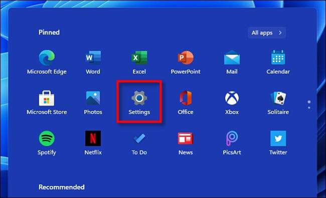 Pertama, buka pengaturan. Untuk melakukannya dengan cepat, tekan Windows + i pada keyboard Anda atau klik menu Start dan pilih ikon "Pengaturan", yang disematkan ke bagian atas menu secara default.