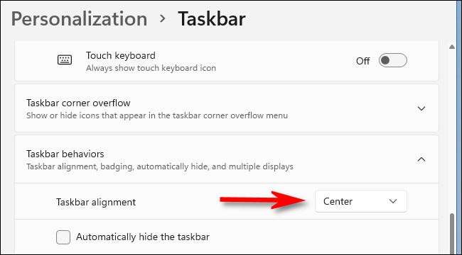 Daftar opsi akan muncul. Klik menu drop-down di sebelah "Penyelarasan Taskbar."