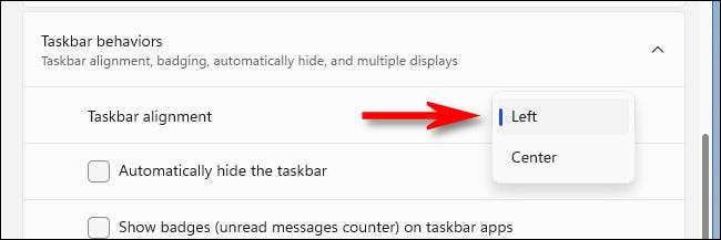 Di menu "Taskbar Alignment" yang muncul, pilih "Kiri."