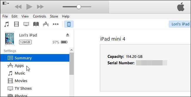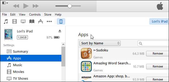 Tampilan layar “Apps” memungkinkan Anda untuk menginstal dan menghapus aplikasi dari perangkat Anda menggunakan iTunes.