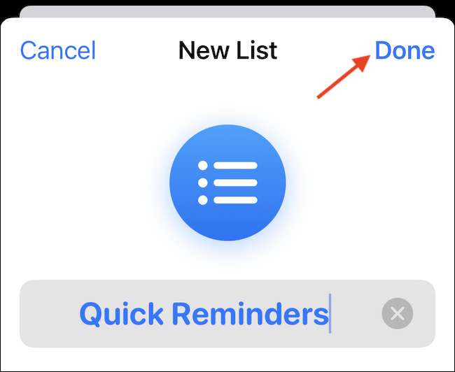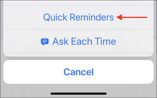 Secara default, tindakan akan menambahkan tugas ke daftar yang disebut "pengingat," yang merupakan daftar default di aplikasi pengingat. Jika Anda ingin beralih ke daftar yang berbeda, ketuk tombol "Pengingat" dari tindakan.