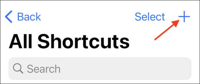 Di aplikasi pintas, buka tab "My Portcuts". Di sini, ketuk tombol "+" dari sudut kanan atas.