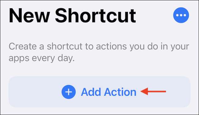 Ini akan membawa Anda ke jalan pintas kosong. Ketuk tombol "Tambahkan Tindakan" untuk membuat tindakan baru.