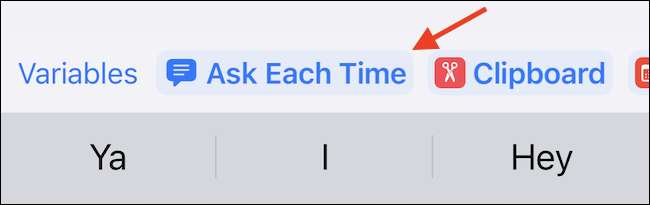 Kemudian, pilih "tanyakan setiap kali" sebagai variabel. Ini memastikan bahwa pintasan akan meminta Anda untuk pengingat berbasis teks baru setiap kali.