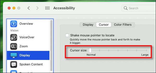 Jika Anda sering kehilangan kursor mouse, Anda bisa membuat pointer lebih besar secara permanen . Cukup buka preferensi sistem, klik "Aksesibilitas," lalu pilih "Tampilan" di sidebar.