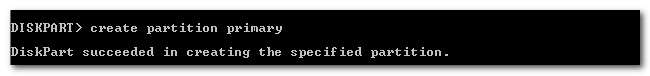 Setelah membersihkan disk, masukkan perintah berikut "buat partisi utama"