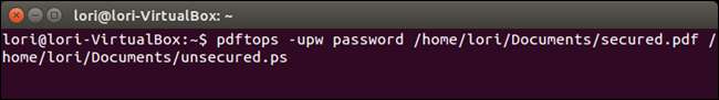 pdftops -upw kata sandi /home/lori/Documents/secured.pdf /home/lori/Documents/unsecured.pdf