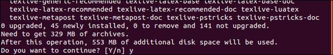 Proses instalasi dimulai dengan analisis sistem Anda dan daftar berapa banyak paket yang akan diinstal dan berapa banyak ruang yang akan mereka gunakan. Saat ditanya apakah Anda ingin melanjutkan, ketik "y" dan tekan Enter.