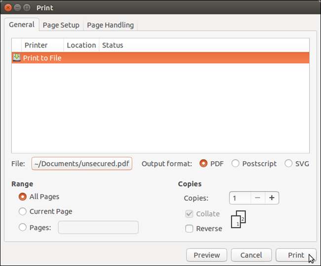 File PDF yang tidak dilindungi dibuat dan disimpan ke lokasi yang Anda tentukan dalam perintah.