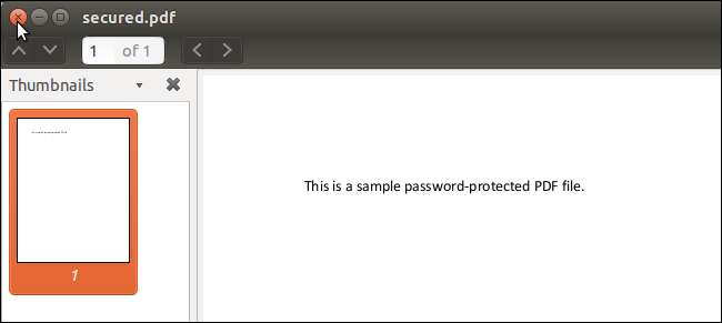 Klik dua kali pada file tersebut untuk membukanya lagi di Evince. Perhatikan bahwa Anda tidak dimintai kata sandi.