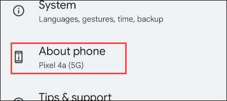 Gulir ke bawah dan pilih "Tentang Telepon."