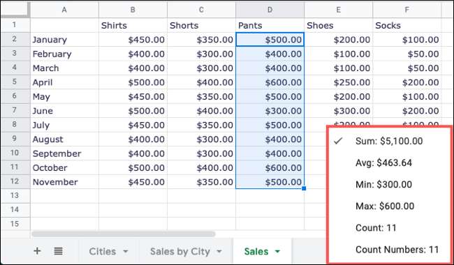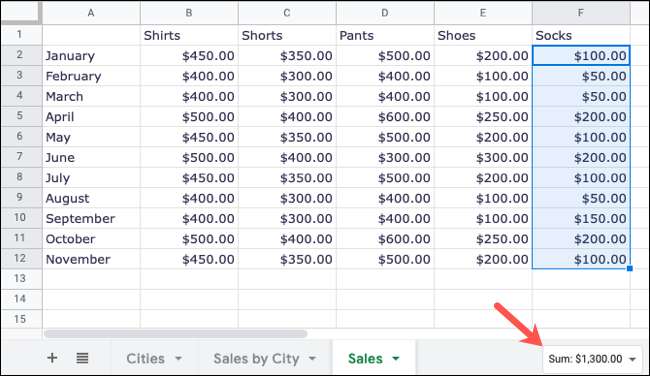 Menuju ke Google sheets. , Masuk, dan buka spreadsheet Anda. Pilih sel yang ingin Anda hitung. Ini bisa menjadi sel yang berdekatan atau tidak berdekatan. Kemudian, cukup lihat ke kanan bawah layar Google Sheets dan Anda akan melihat jumlahnya.
