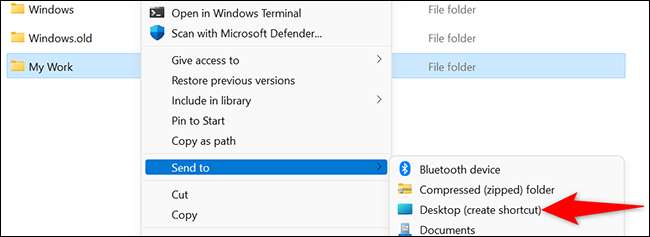 Klik kanan folder Anda (bukan orangtua satu) dan pilih Tampilkan lebih banyak opsi & gt; Kirim ke & gt; Desktop (buat pintasan). Ini akan menempatkan pintasan folder Anda di desktop Anda.