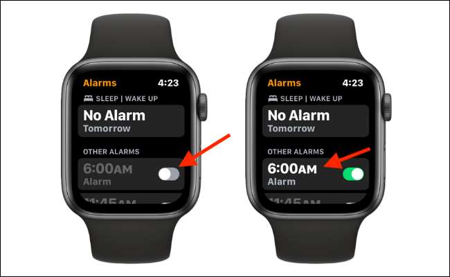Setelah membuka aplikasi alarm, Anda akan melihat daftar semua alarm. Di sini, Anda dapat mengetuk sakelar toggle di sebelah masing-masing untuk mengaktifkan atau menonaktifkan alarm. Ketuk alarm untuk melihat lebih banyak opsi.