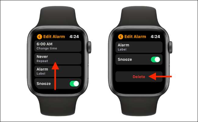Dari sini, Anda dapat mengubah waktu alarm, label, dan frekuensi berulang. Jika Anda ingin menghapus alarm, gulir ke bawah dan ketuk tombol "Hapus".