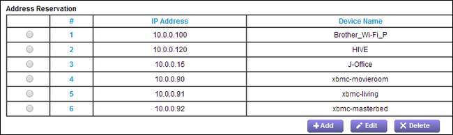 Misalnya, jika dibiarkan ke perangkatnya sendiri, router kami akan menetapkan alamat yang tersedia ke tiga unit Raspberry Pi XBMC kami. Karena kami sering mengotak-atik unit-unit itu dan mengaksesnya dengan alamat IP mereka, masuk akal untuk menetapkan alamat secara permanen kepada mereka yang logis dan mudah diingat: