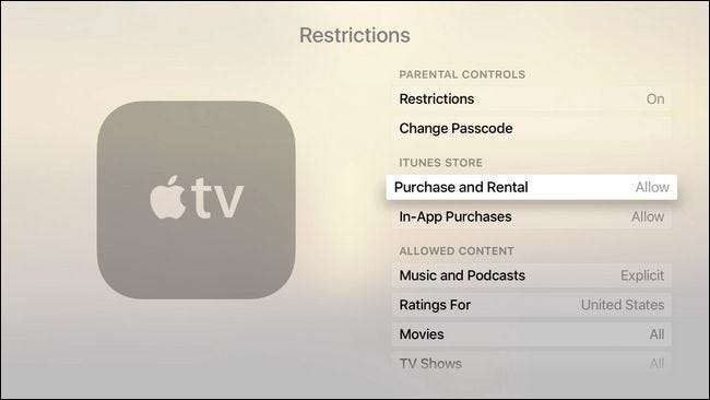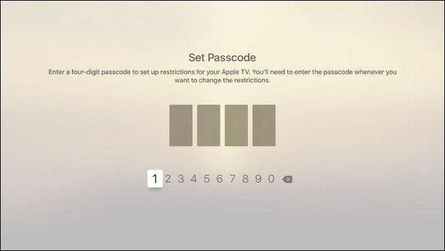 Pilih empat digit kode sandi dan, ketika diminta, ulangi kode sandi untuk mengonfirmasi. Anda akan kembali ke menu Pembatasan utama. Sekarang setelah kami mengamankan Apple TV dengan kode sandi, mari kita lihat batasan individu yang dapat Anda atur.