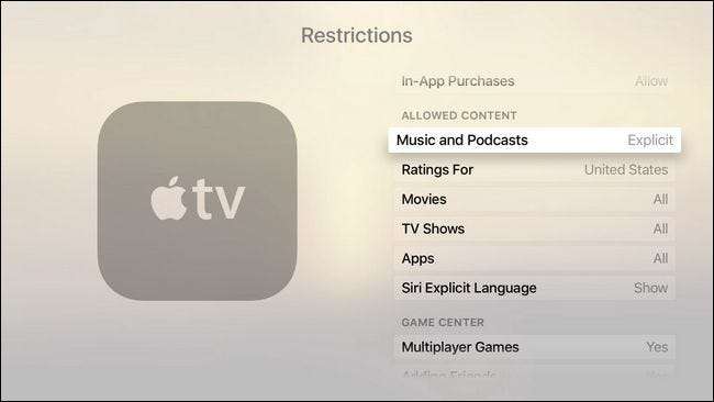 Sub-bagian berikutnya, "Izinkan Konten", tidak membahas pembatasan pembelian tetapi dengan pembatasan pemutaran konten. Di sini Anda dapat mengalihkan musik dan podcast antara "Eksplisit" dan "Bersih", mengubah sistem peringkat untuk mewakili peringkat negara Anda (jika tersedia), mengubah film, aplikasi, dan bahkan apakah Siri akan menampilkan bahasa eksplisit atau tidak.