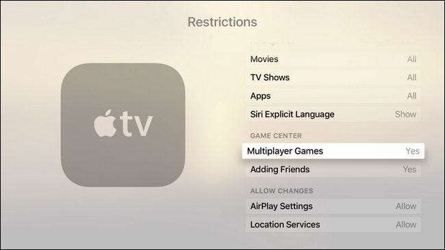 Akhirnya ada dua bagian terakhir untuk dilihat. Di subbagian "Game Center" Anda dapat mengaktifkan dan menonaktifkan Game Multipemain serta fungsi Menambahkan Teman. Kedua pembatasan ini berguna jika Anda ingin mengizinkan anak-anak yang lebih kecil di rumah Anda untuk bermain game tetapi tidak menambahkan orang asing sebagai teman atau bermain game multipemain online sama sekali.