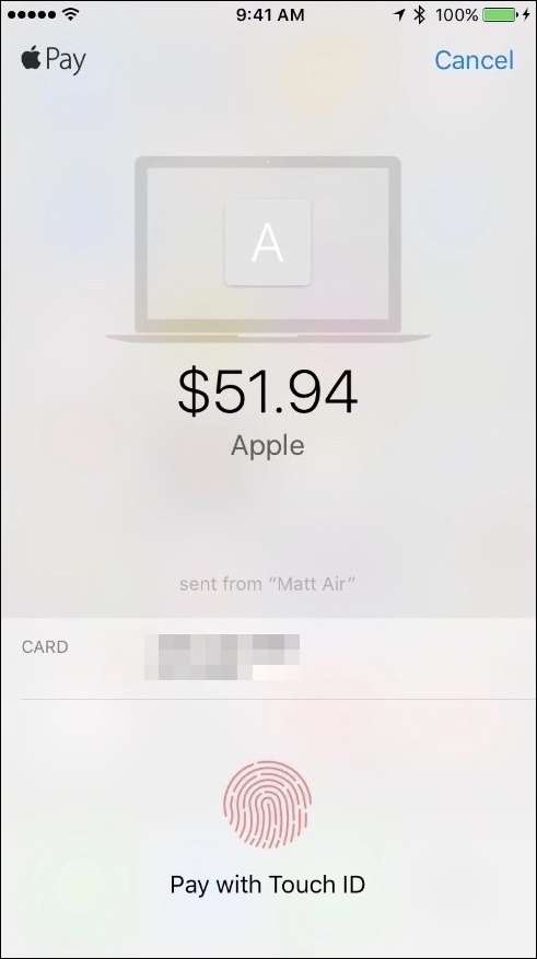 Anda kemudian akan diminta di iPhone untuk mengonfirmasi dengan meletakkan jari Anda pada sensor Touch ID. Jika Anda menggunakan Apple Watch untuk membayar, Anda perlu menekan tombol samping dua kali untuk menyelesaikan transaksi.