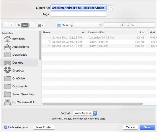 Mengeklik tombol panah di samping bidang "Ekspor Sebagai", bagaimanapun, akan memperluas dialog sehingga Anda dapat menavigasi tentang drive sistem Mac Anda, membuat folder baru, dan menampilkan atau menyembunyikan ekstensi file