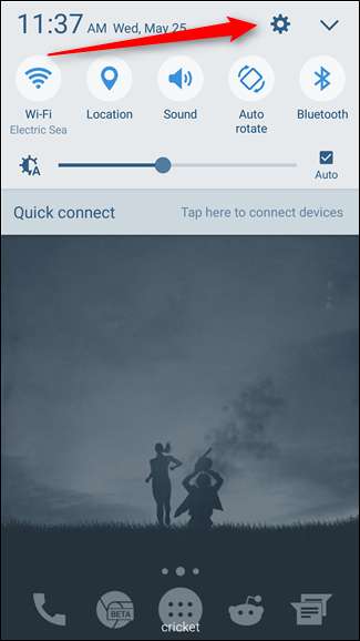 Hal pertama yang Anda ingin lakukan adalah melompat ke menu Pengaturan dengan menurunkan bayangan pemberitahuan dan mengetuk ikon roda gigi.
