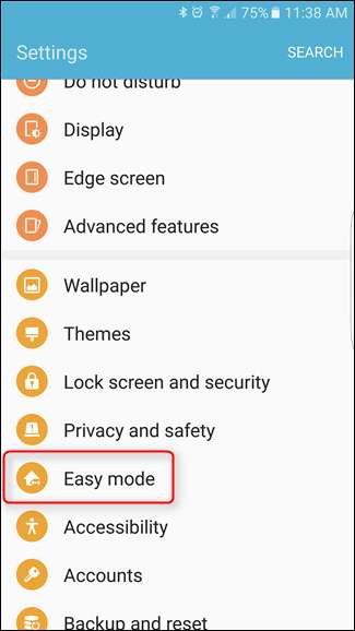 Di menu ini, gulir ke bawah hingga Anda melihat opsi "Mode Mudah". Ketuk itu.