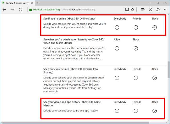 Ingatlah bahwa ini akan mencegah teman Xbox Anda melihat saat Anda online di konsol Xbox One atau Xbox 360 dan game konsol Xbox apa yang Anda mainkan baru-baru ini juga.