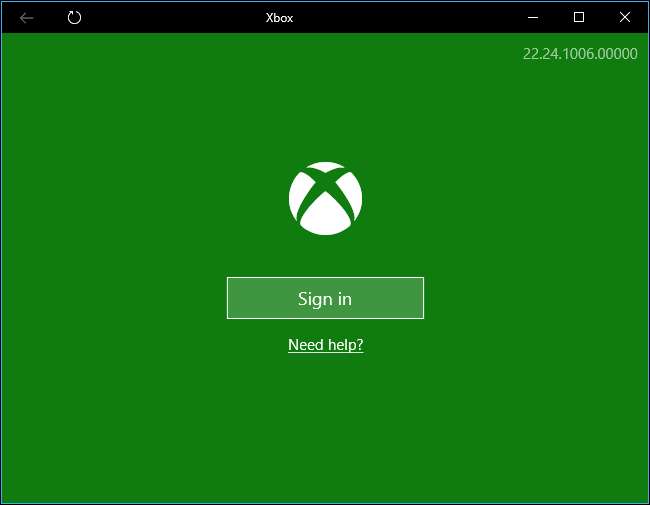 Untuk meluncurkannya, buka menu Start Anda, cari "Xbox", dan luncurkan aplikasi. Anda harus masuk dengan akun hanya untuk mengakses pengaturan. Anda bisa menggunakan akun Microsoft apa saja. Klik tombol "Masuk" dan Windows akan menawarkan untuk memasukkan Anda dengan akun Microsoft yang Anda gunakan untuk masuk ke Windows 10.