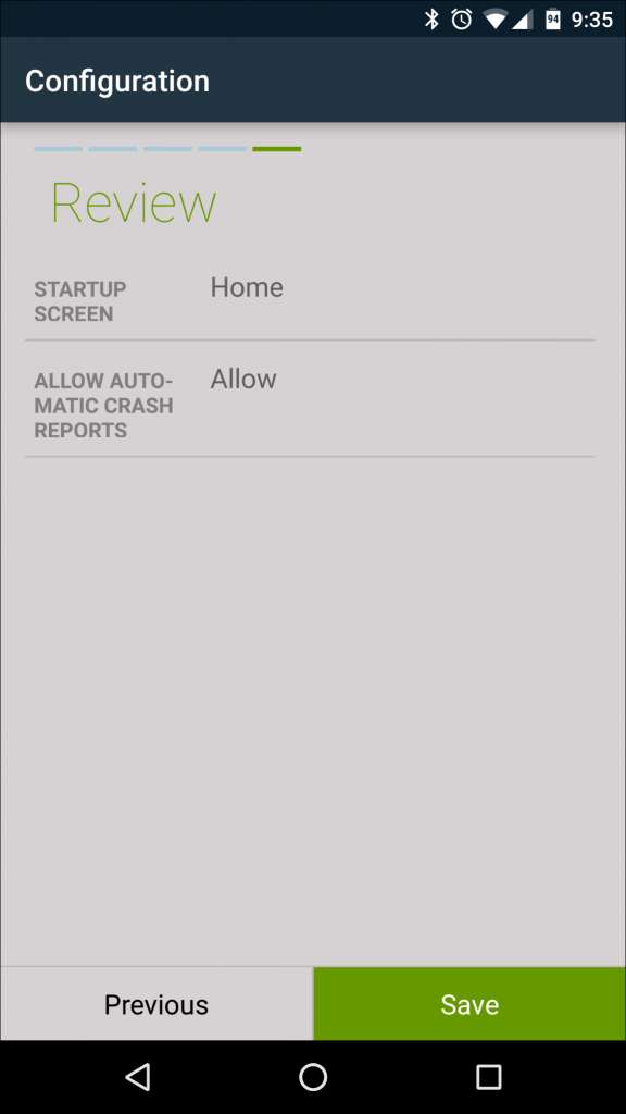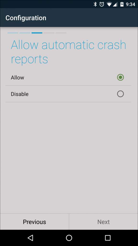 Dua opsi terakhir sederhana: pilih apakah akan mengizinkan aplikasi mengirim laporan kerusakan secara otomatis jika terjadi kesalahan, yang membantu pengembang memperbaiki masalah dan membangun aplikasi yang lebih baik secara keseluruhan; dan kemudian tinjauan akhir penyiapan. Tekan “Simpan” di pojok kanan bawah, dan Anda siap untuk mulai mengonfigurasi opsi sinkronisasi.