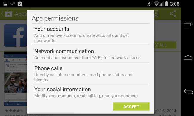 Pastikan untuk mengawasi izin saat memasang aplikasi. Jika aplikasi yang tidak terlalu Anda percayai membutuhkan terlalu banyak izin, itu pertanda bahwa aplikasi tersebut berpotensi menyalahgunakan izin tersebut. Aplikasi dapat meminta akses ke izin tambahan saat diperbarui, tetapi Anda harus menyetujui pembaruan secara manual.