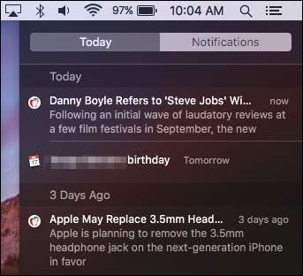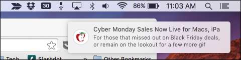 Anda akan melihat pemberitahuan ini meluncur keluar dari sudut kanan atas seperti pemberitahuan OS X lainnya. Mereka biasanya akan memberi tahu Anda ketika sebuah situs web telah memposting artikel baru atau berita terbaru. Biasanya mereka menghilang dalam beberapa detik tetapi pada hari-hari sibuk, Anda mungkin mendapatkan satu demi satu.