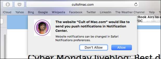 Untungnya, jika Anda tidak ingin menerima pemberitahuan dari situs web tertentu (atau tidak sama sekali), Anda dapat dengan mudah mematikannya di preferensi Safari dengan mengeklik menu Safari atau menggunakan kombinasi papan ketik "Command +,".