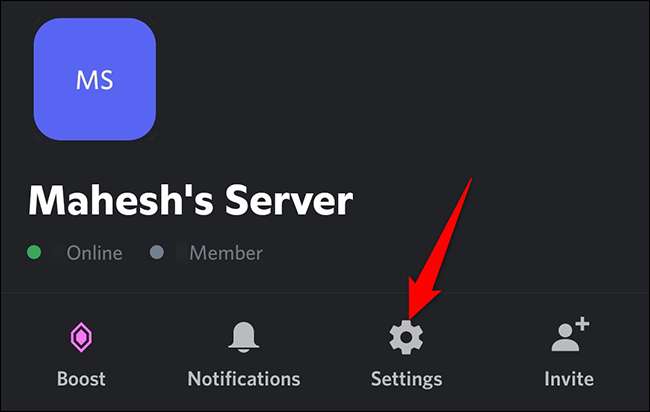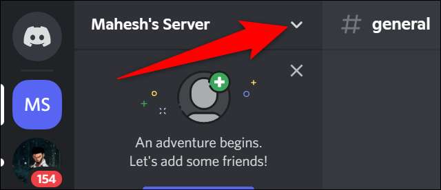 Di bagian atas halaman server yang terbuka, tepat di sebelah nama server, klik ikon panah bawah.