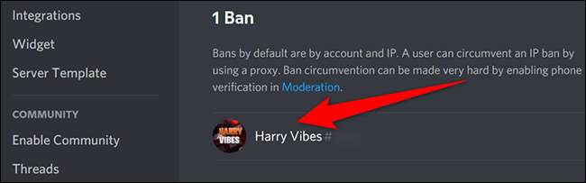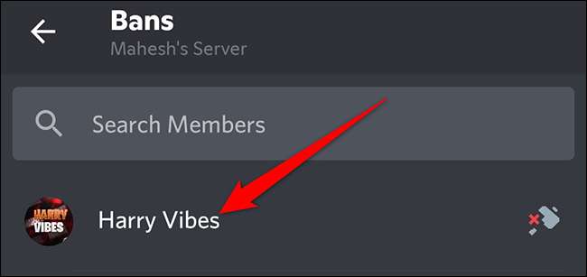 Anda akan melihat layar "Bans". Di sini, temukan pengguna yang ingin Anda unban di server Anda. Lalu ketuk nama mereka.