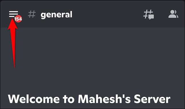 Mulailah dengan meluncurkan aplikasi Discord di ponsel Anda. Di sudut kiri atas aplikasi, ketuk tiga garis horizontal.