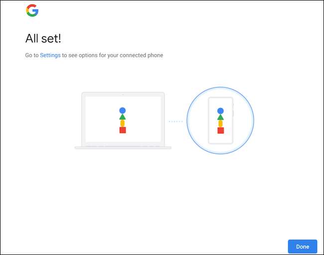 Di halaman berikutnya, masuk dengan kredensial Google Anda. Anda harus segera melihat jendela konfirmasi "ALL SET". Klik "Selesai" untuk menutup jendela.