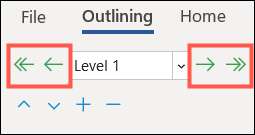Di setiap sisi kotak garis garis besar, Anda memiliki panah. Yang di sebelah kanan memungkinkan Anda untuk mengurangi atau menurunkan satu tingkat (panah tunggal) atau sebagai teks tubuh (panah ganda). Panah di sebelah kiri memungkinkan Anda menambah atau mempromosikan satu level (panah tunggal) atau ke level tertinggi (panah ganda).
