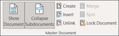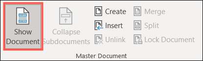 Untuk memasukkan subdokumen, klik "Tampilkan Dokumen" di Ribbon untuk memperluas bagian kontrol itu.