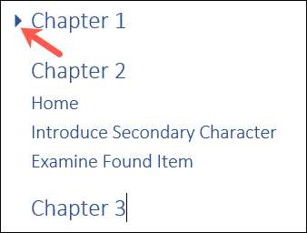 Anda kemudian akan melihat garis besar Anda dalam format yang dapat dilipat dan diperluas menggunakan tata letak cetak, tata letak web, atau mode baca di Word . Gunakan panah di sebelah judul untuk runtuh atau perluas level yang Anda buat dengan garis besar.