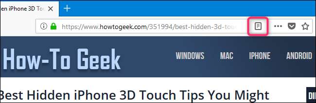 Jika tersedia untuk suatu laman, Anda akan melihat ikon Tampilan Pembaca di sebelah kanan bilah alamat. Klik untuk mengaktifkan Tampilan Pembaca, dan ikon berubah menjadi biru dan halaman diformat ulang untuk Anda.